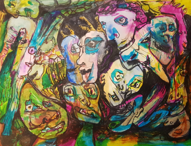 Kratztechnik auf Pappe, 30cm * 23cm, 2017